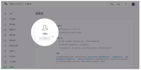 開(kāi)通流程:進(jìn)入微信公眾平臺小程序后臺,點(diǎn)擊左側面板“流量主”,滿(mǎn)足開(kāi)通門(mén)檻的小程序開(kāi)發(fā)者直接點(diǎn)擊“開(kāi)通”即可創(chuàng )建相應的廣告位。