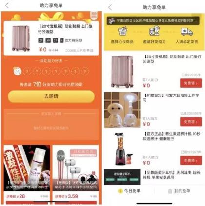 所謂拼團模式,字面理解起來(lái)就是兩個(gè)或以上的用戶(hù)通過(guò)組合來(lái)獲取更優(yōu)惠的價(jià)格,其實(shí)也是商家為了獲取更多客戶(hù),在小程序對其商品所展開(kāi)的營(yíng)銷(xiāo)活動(dòng)。所以我們會(huì )常常在微信聊天時(shí)不經(jīng)就收到好友法老的拼多多的廣告,在朋友圈也是如此。長(cháng)久以來(lái),在微信這個(gè)重要平臺上,用戶(hù)們就越來(lái)越熟悉并接以拼團為營(yíng)銷(xiāo)模式的電商小程序。