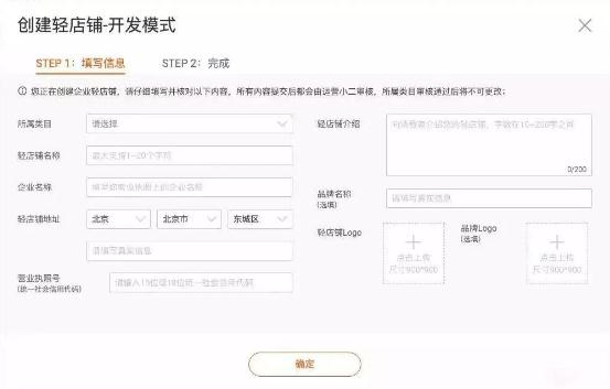 2. 創(chuàng )建輕店鋪,選擇正確的服務(wù)類(lèi)目,上傳資質(zhì)「目前僅支持開(kāi)發(fā)模式,通過(guò)模板創(chuàng )建方式敬請期待」;
