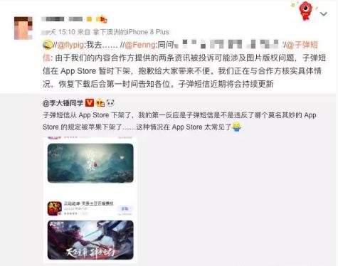 但這次,子彈短信資訊內容圖片涉及侵權問(wèn)題,并沒(méi)有人站出來(lái)投訴,當事人直接聯(lián)系了蘋(píng)果官方,就搞了個(gè)下架處理的結果。