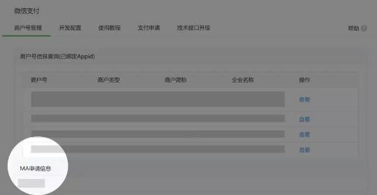 4. 審核通過(guò)后,前往對應平臺確認授權申請,公眾號、小程序前往公眾平臺(mp.weixin.qq.com),APP前往開(kāi)放平臺(open.weixin.qq.com);點(diǎn)擊【微信支付-商戶(hù)號管理-MA申請信息】,查看相關(guān)商戶(hù)號信息,確認授權申請;