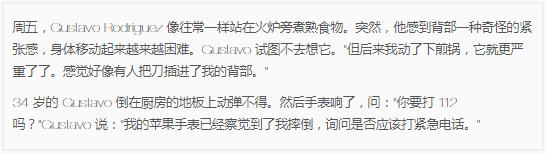 這個(gè)功能剛出來(lái)的時(shí)候不被外界所理解,這次的案例可以說(shuō)明的實(shí)用性。根據瑞典媒體《Aftonbladet》的報道,這名叫 Gustavo Rodriguez 的男子在爐子上做飯時(shí)背部出現嚴重疼痛,突然的不適使他翻了個(gè)身,在爐子燃起的時(shí)候倒在了地板上。