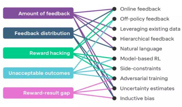 當我們擴大獎勵建模時(shí)將會(huì )遇到的挑戰(左側)以及最有希望的解決方案(右側)
