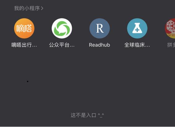 后來(lái)微信還是慢慢給小程序增加了一些「入口」,比如在聊天頁(yè)面下拉可以調出用戶(hù)最近使用過(guò)的小程序。即便如此,微信還不忘跟大家開(kāi)個(gè)玩笑,當你按住屏幕,把聊天頁(yè)面拉到最底端時(shí)會(huì )發(fā)現一行小字,「這不是入口 ^_^」