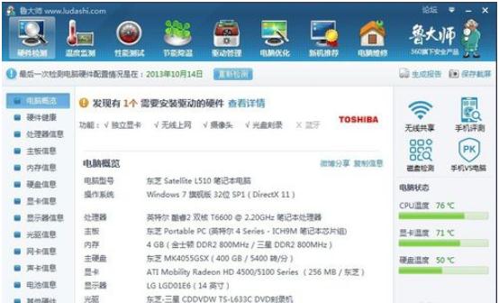 進(jìn)入魯大師,什么都一目了然!當然還有其它功能,不在本文敘述范圍!