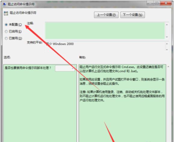 雙擊“阻止訪(fǎng)問(wèn)命令提示符”配置項,打開(kāi)配置對話(huà)框;