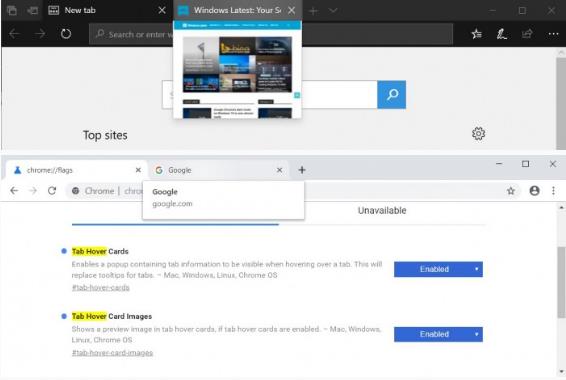 啟用第二個(gè)標記“TabHoverCardImages”后,瀏覽器還將顯示選項卡的預覽圖像。