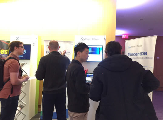 騰訊云數據庫展位吸引眾多參會(huì )者前來(lái)咨詢(xún)洽談