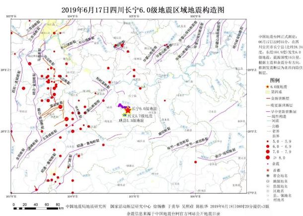據中國地震臺網(wǎng)測定,2019 年 6 月 17 日 22 時(shí) 55 分在四川宜賓市長(cháng)寧縣(北緯 28.34 度,東經(jīng) 104.90 度)發(fā)生 6.0 級地震,震源深度 16 千米,震源機制解結果顯示為走滑型地震。