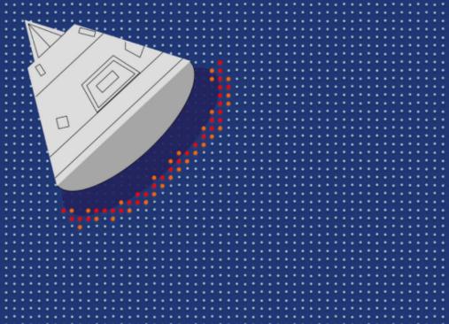 盡管在細節上可能有所不同,它們的樣子都是大同小異——上小下大,并且下面是一個(gè)很鈍的平面。這樣的鈍形平面能保證被壓縮的空氣產(chǎn)生的熱量主要集中于航天器鈍形一面,而不會(huì )流失到航天器后面,從而有效的保護后面的航天員或者其他科學(xué)設備。因此,現在任何的載人航天器的返回艙都被設計成鈍形的。在返回艙返回大氣層時(shí),它的受熱情況大概如下所示: