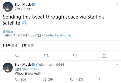 馬斯克發(fā)文稱(chēng):“通過(guò) Starlink 衛星發(fā)送了這條推文。”隨后,他又發(fā)布了一條稱(chēng),“哇,它成功了。”