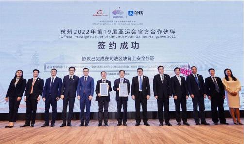 在現場(chǎng),杭州亞組委和阿里巴巴還通過(guò)螞蟻金服區塊鏈可信存證技術(shù)簽約,為大型綜合國際賽事首創(chuàng )。