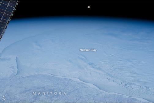 國際空間站為拍攝地球景觀(guān)提供了獨特的視角,有助于為陸地上的專(zhuān)家提供支持。NASA 指出,哈德遜灣一旦完全冰凍,便成為北極熊使用的重要棲息地,這些北極熊在冰上遷徙直至夏季融化開(kāi)始。冰在十月開(kāi)始形成。