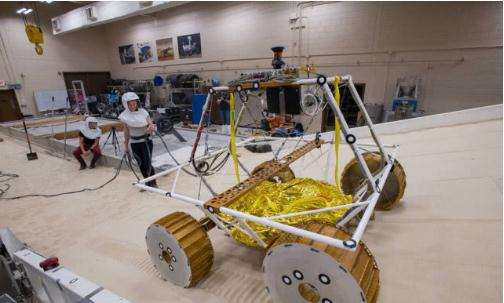 據美國宇航局官網(wǎng)報道的消息,近日在美國俄亥俄州克利夫蘭市美國宇航局格倫研究中心的“模擬月球運行實(shí)驗室”,團隊已經(jīng)開(kāi)始測試月球找水車(chē)的工程原型車(chē)。