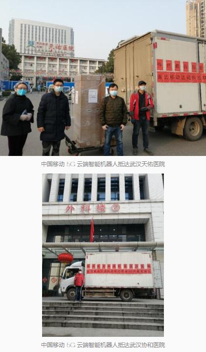 2 月 3 日、2 月 4 日,武漢協(xié)和醫院、同濟天佑醫院分別迎來(lái)了由中國移動(dòng)和達闥科技聯(lián)合捐贈的 2 臺 5G 云端智能機器人。此次上崗的 5G 云端智能機器人包含了服務(wù)機器人、消毒清潔機器人,在中國移動(dòng)快速、靈活、安全的 5G 網(wǎng)絡(luò )的支持下,可幫助醫護人員執行導診、消毒、清潔和送藥等工作,助力病區醫護人員減少交叉感染,提升病區隔離管控水平。
