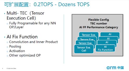 Arm 的 AI 產(chǎn)品的發(fā)布和落地進(jìn)展在業(yè)界都并非最快,這其中很重要的原因就是 Arm 在權衡 NPU 的效率和靈活性花了更多時(shí)間。在 Arm 中國的產(chǎn)品中,周易 AIPU 作為 Arm 中國的首款 AI 產(chǎn)品,通過(guò)一套新的 AI 算法指令集適應 AI 處理器的需求,兼顧通用性和效率。并且,周易 AIPU 的指令集設計和架構設計都由 Arm 中國完成,因此這也是一個(gè) Arm 中國自主可控的產(chǎn)品。