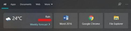 本周開(kāi)始,微軟在 Search UI 中啟用了小型的天氣磁貼,當點(diǎn)擊任務(wù)欄中的搜索圖標時(shí),會(huì )在左上角顯示當前的天氣狀況和溫度。而這是服務(wù)器端的改進(jìn),因此并不捆綁特定的 Windows 10 版本。也就是說(shuō),運行 Windows 10 Version 1903 或者 2004 功能更新的用戶(hù)都會(huì )看到這個(gè)磁貼。