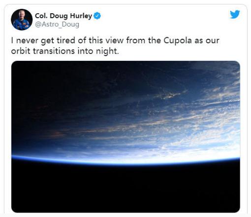 美國當地時(shí)間周四,赫爾利發(fā)布了一張地球從白天過(guò)渡到黑夜的照片,顯示其處于半明半暗狀態(tài)。這張圖片以給人以平和的印象,沒(méi)有任何跡象表明新冠疫情或美國非洲裔男子喬治·弗洛伊德(George Floyd)在警察執法暴力過(guò)程中遇難引發(fā)的社會(huì )動(dòng)蕩。