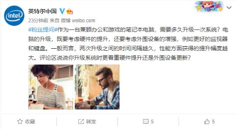 在 Intel 中國最新的微博分享中,就回應了粉絲提問(wèn)“作為一臺兼顧辦公和游戲的筆記本電腦,需要多久升級一次系統?”