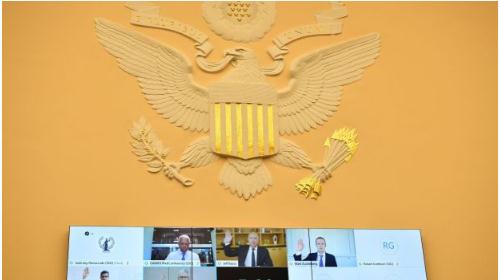 圖:2020 年 7 月 29 日,在美國眾議院司法小組委員會(huì )聽(tīng)證會(huì )上,Facebook、亞馬遜、Alphabet 以及蘋(píng)果等四大科技公司首席執行官宣誓作證