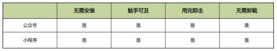 小程序具有無(wú)需安裝、觸手可及、即用即走、無(wú)需卸載的特點(diǎn)。不過(guò),其實(shí)對比一下你會(huì )發(fā)現: