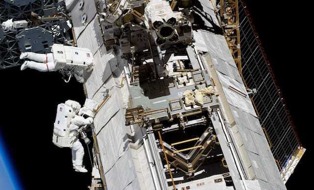 圖示:2011 年,在一次持續 6 小時(shí) 34 分鐘的太空行走中,NASA 宇航員史蒂夫·鮑文(Steve Bowen)和阿爾文·德魯(Alvin Drew)安裝了一根電力延長(cháng)電纜,移動(dòng)了失靈的氨氣泵,安裝了一個(gè)攝像頭和其他設備。國際空間站已經(jīng)連續使用 20 年時(shí)間,不斷進(jìn)行維護仍然是一項挑戰。