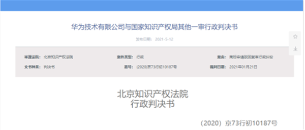 5月12日,北京法院審判信息網(wǎng)公布華為技術(shù)有限公司與國家知識產(chǎn)權局其他一審行政判決書(shū),判決結果為駁回原告華為技術(shù)有限公司的訴訟請求。