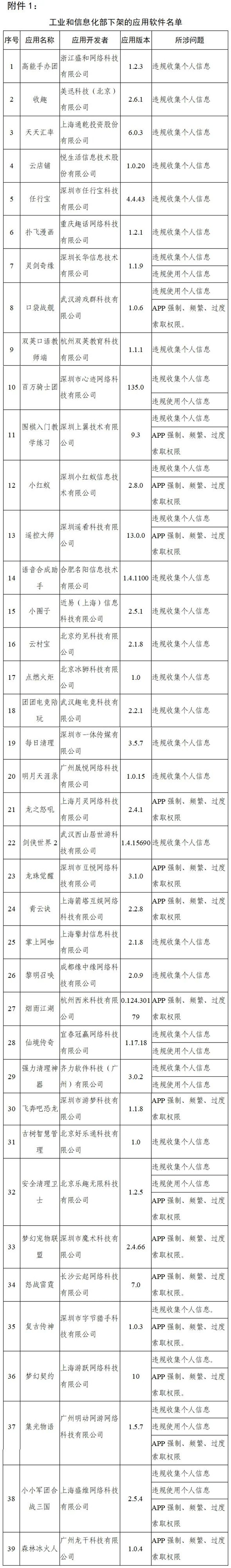 2021年4月23日,我部向社會(huì )通報了93家存在侵害用戶(hù)權益行為APP企業(yè)的名單。截至目前,經(jīng)第三方檢測機構核查復檢,尚有39款APP未按照我部要求完成整改(詳見(jiàn)附件1)。各通信管理局按我部APP整治行動(dòng)部署,積極開(kāi)展手機應用軟件監督檢查,此次內蒙古、安徽、廣東、四川、浙江省(自治區)通信管理局檢查發(fā)現共有46款APP仍未完成整改(詳見(jiàn)附件2-6)。