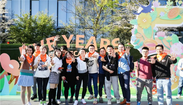 在阿里巴巴“五年陳”授戒的那幾天,西溪園區彩旗飄揚,一些老員工的祝福隨處可見(jiàn)。