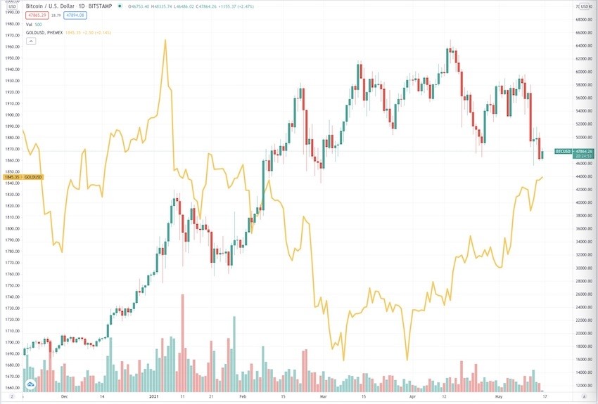這瞬間帶來(lái)了比特幣和狗狗幣在內的大多數數字貨幣快速下挫。比特幣一度大跌1萬(wàn)美元。截至北京時(shí)間5月16日11:43,比特幣仍在5萬(wàn)美元以下,報47896美元。