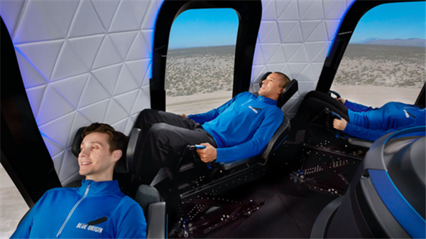 完成兩位貝索斯上天發(fā)射任務(wù)的將是New Shepard號運載火箭,它每次最多可送6人進(jìn)行外太空體驗。太空艙每個(gè)位置都有屬于自己的窗戶(hù),讓每個(gè)上天的富豪都能好好觀(guān)賞外太空景觀(guān)。值得注意的是,在返回地球表面之前,乘客能夠體驗到幾分鐘的失重。整個(gè)行程大約11分鐘。