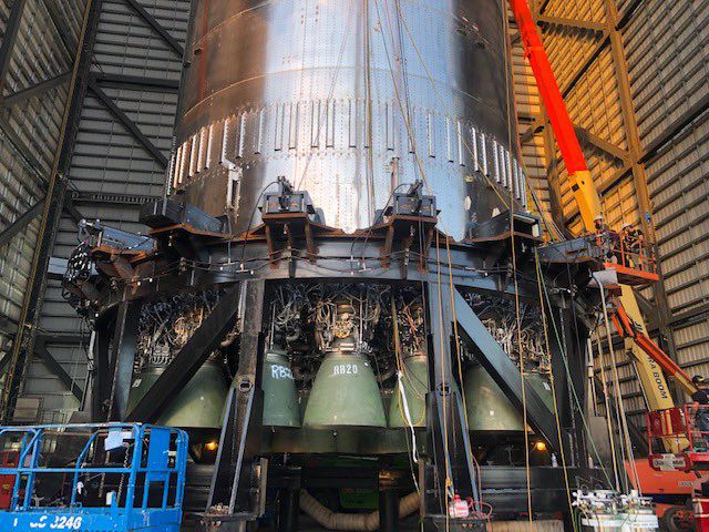 8 月 3 日消息,當地時(shí)間上周日,SpaceX 完成超級重型火箭助推器原型 B4 的堆疊工作。隨后工程師和技術(shù)人員僅僅花了一晚上時(shí)間,就將 29 部猛禽發(fā)動(dòng)機安裝在助推器上。
