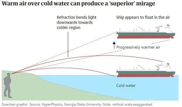 所以,這真的不是外星飛碟,也不是平行世界出現了,而是一種與光的折射有關(guān)的物理現象。