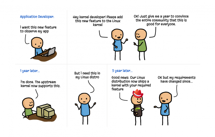 從歷史上看,由于內核具有監督和控制整個(gè)系統的特權能力,操作系統一直是實(shí)現可觀(guān)察性、安全性和網(wǎng)絡(luò )功能的理想場(chǎng)所。