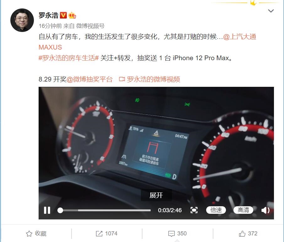 隨后羅永浩宣布代言上汽大通 MAXUS 原廠(chǎng)房車(chē),這款車(chē)搭載了 HLC 限高防撞預警系統、ADAS 智能駕駛輔助系統以及博世 ESP 9.3 車(chē)身電子穩定系統等等,官網(wǎng)售價(jià) 61.98 萬(wàn)元。