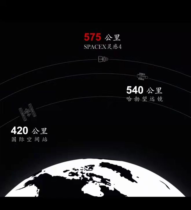 這次任務(wù)被稱(chēng)為“Inspiration4”(鼓舞四人組),他們之前從未進(jìn)入到地球軌道。載人龍飛船將搭載這四名乘客,進(jìn)入到距離地球地面 575 公里的軌道上進(jìn)行,這是自哈勃太空望遠鏡維修任務(wù)以來(lái),距離地球最遠的載人航天飛行了。