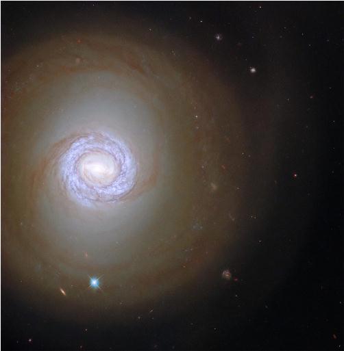 盡管這里沒(méi)有它的鄰居星系,但在這張圖片中,NGC 1317 被兩個(gè)來(lái)自宇宙中非常不同的地方的天體所伴隨。被縱橫交錯的圖案包圍著(zhù)的亮點(diǎn)是來(lái)自我們銀河系的一顆恒星,其被衍射尖峰包圍著(zhù),而更紅的拉長(cháng)的點(diǎn)則是遠在 NGC 1317 之外的一個(gè)遙遠星系。