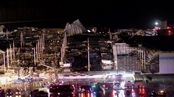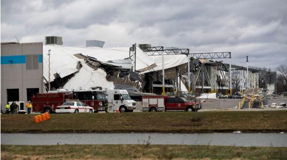 伊利諾伊州科林斯維爾緊急事務(wù)管理局發(fā)布在 Facebook 主頁(yè)上的帖子稱(chēng),坍塌是一起“大規模傷亡”事件。它后來(lái)發(fā)布了張最新的事件善后照片,顯示倉庫的很大一部分被龍卷風(fēng)完全摧毀。據當地媒體報道,亞馬遜五年前在愛(ài)德華茲維爾開(kāi)設了這個(gè)倉庫,占地接近 14 萬(wàn)平方米。