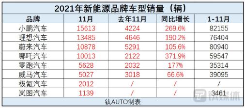下周就要進(jìn)入 2022 年了。從數據上回顧年末的幾個(gè)月,新能源車(chē)銷(xiāo)量猛增,11 月可以用“瘋狂”來(lái)形容。乘聯(lián)會(huì )發(fā)布信息統計,11 月,新能源乘用車(chē)銷(xiāo)量為 42.9 萬(wàn)輛,環(huán)比增長(cháng) 17.9%,同比增長(cháng) 131.7%;1-11 月累計銷(xiāo)量為 280.7 萬(wàn)輛,同比增長(cháng) 190.2%,除了特斯拉賣(mài)出 52859 輛之外,造車(chē)新勢力也迎來(lái)了集體爆發(fā)。
