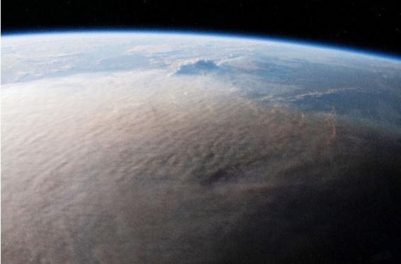 根據 NASA 地球觀(guān)測站的數據,湯加火山噴發(fā)致使大量火山物質(zhì)、氣體與水蒸氣進(jìn)入高空形成巨大云團,噴發(fā)至高空 40 公里處,可能高達 50 公里,引發(fā)破壞性的海嘯波。國際空間站(ISS)上的一名宇航員在太空拍攝到了南太平洋上空火山灰的照片。
