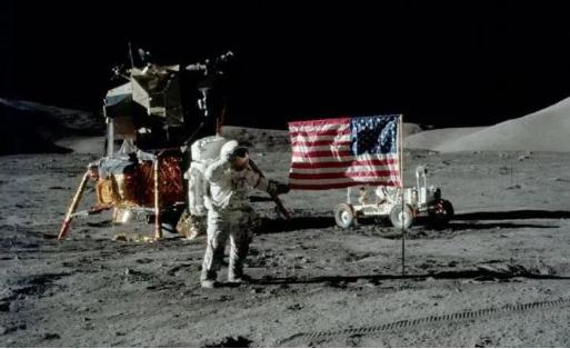 美國航天員在月球上展示國旗