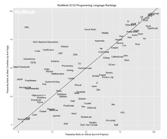知名軟件行業(yè)分析公司 RedMonk 發(fā)布了 2022 年 1 月(第一季度)編程語(yǔ)言排行榜。