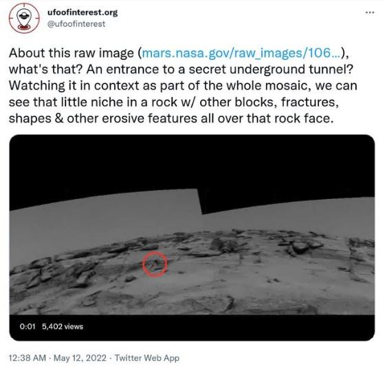 UFO 揭秘者 UFO of Interest 當地時(shí)間周三在 Twitter 上發(fā)文稱(chēng)--“把它作為整個(gè)馬賽克的一部分來(lái)觀(guān)察,我們可以看到巖石上的那個(gè)小凹槽跟其他巖塊、斷裂、形狀和其他侵蝕性特征一起遍布該巖面。”