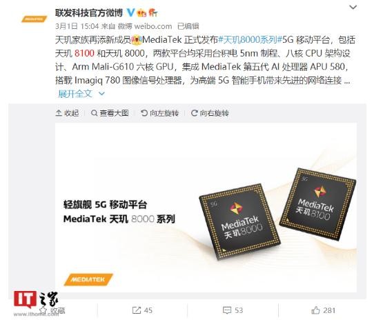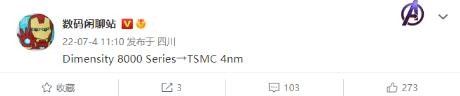 該博主表示,除了 Q3 季度上市的天璣 9000+ 芯片外,聯(lián)發(fā)科新款天璣 8000 系芯片也要來(lái)了,新品暫定年底發(fā)布,參數方面非常不錯。不過(guò)具體參數還有待曝光。