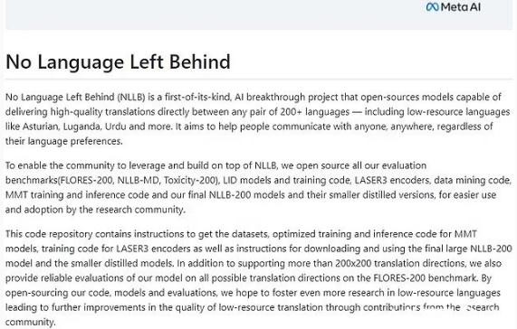 Meta 公司的“無(wú)語(yǔ)言遺漏”(NLLB)計劃。