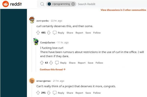 " 真的想不出有什么其他項目更應該得到這項榮譽(yù),恭喜 curl。"
