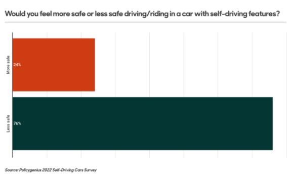 ▲ 四分之三的美國人認為自動(dòng)駕駛不安全