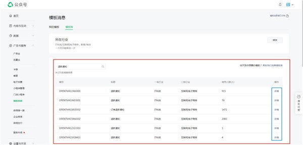 微信公眾號模板消息在哪添加,公眾號模板消息設置