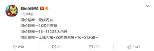 據數碼博主 @數碼閑聊站 最新發(fā)布的信息顯示,即將亮相的一款新機將擁有同價(jià)位唯一無(wú)線(xiàn)閃充、唯一 2K 柔性直屏、唯一 16+512GB 大內存,集如此三項頂級配置于一身,可見(jiàn)該機堆料的豪橫程度。