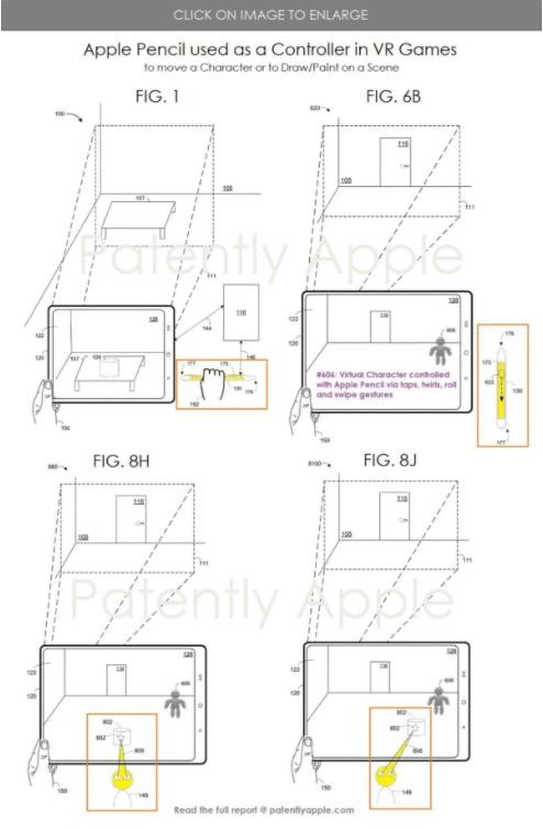 根據美國商標和專(zhuān)利局(USPTO)公示的清單,蘋(píng)果今天獲得了一項關(guān)于 Apple Pencil 的技術(shù)專(zhuān)利。根據專(zhuān)利描述,Apple Pencil 可以和混合現實(shí)頭顯、iPad、Mac 顯示器等設備進(jìn)行交互和操作,可以充當 VR 游戲的控制器。